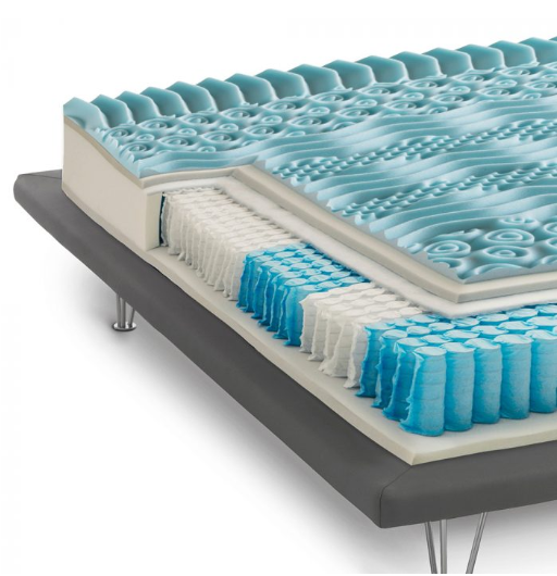 Materasso H25 realizzato con sistema Box System ad alta portanza in poliuretano espanso e molle insacchettate indipendenti abbinate alla schiuma Memory-Foam.