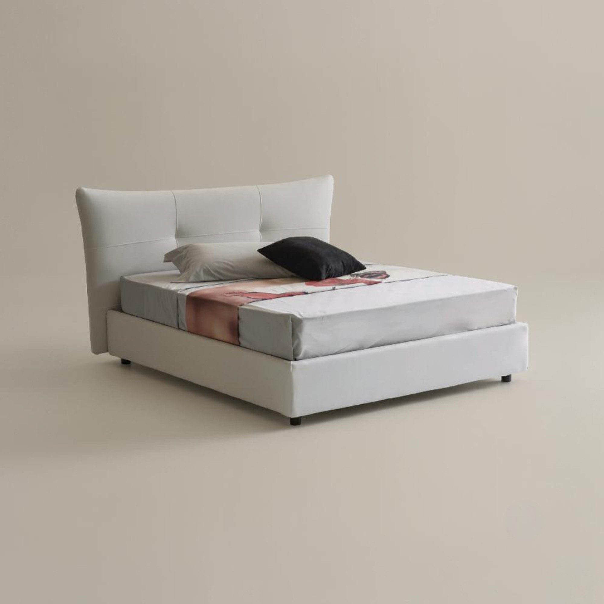 La struttura del letto Orzinuovi poggia su 13 doghe in faggio con doppio rinforzo, per un supporto solido e duraturo durante il riposo. Il contenitore è capiente e accessibile grazie al meccanismo di sollevamento. Il rivestimento è completamente sfoderabile, con ampia scelta di tessuti e microfibre in diversi colori per adattarsi allo stile della camera da letto.