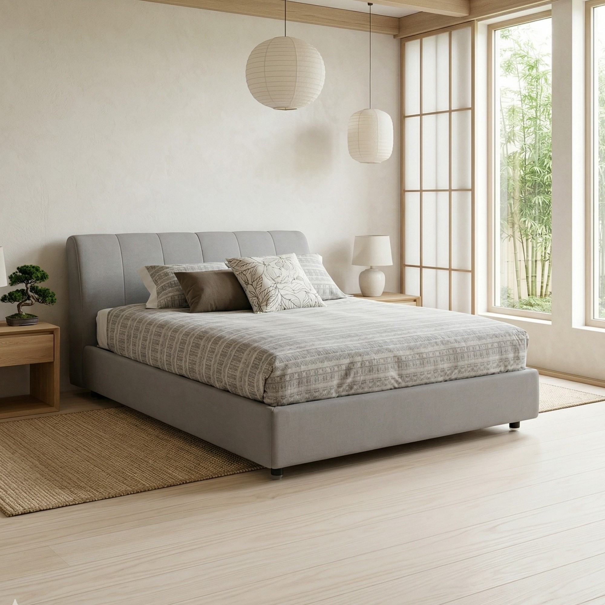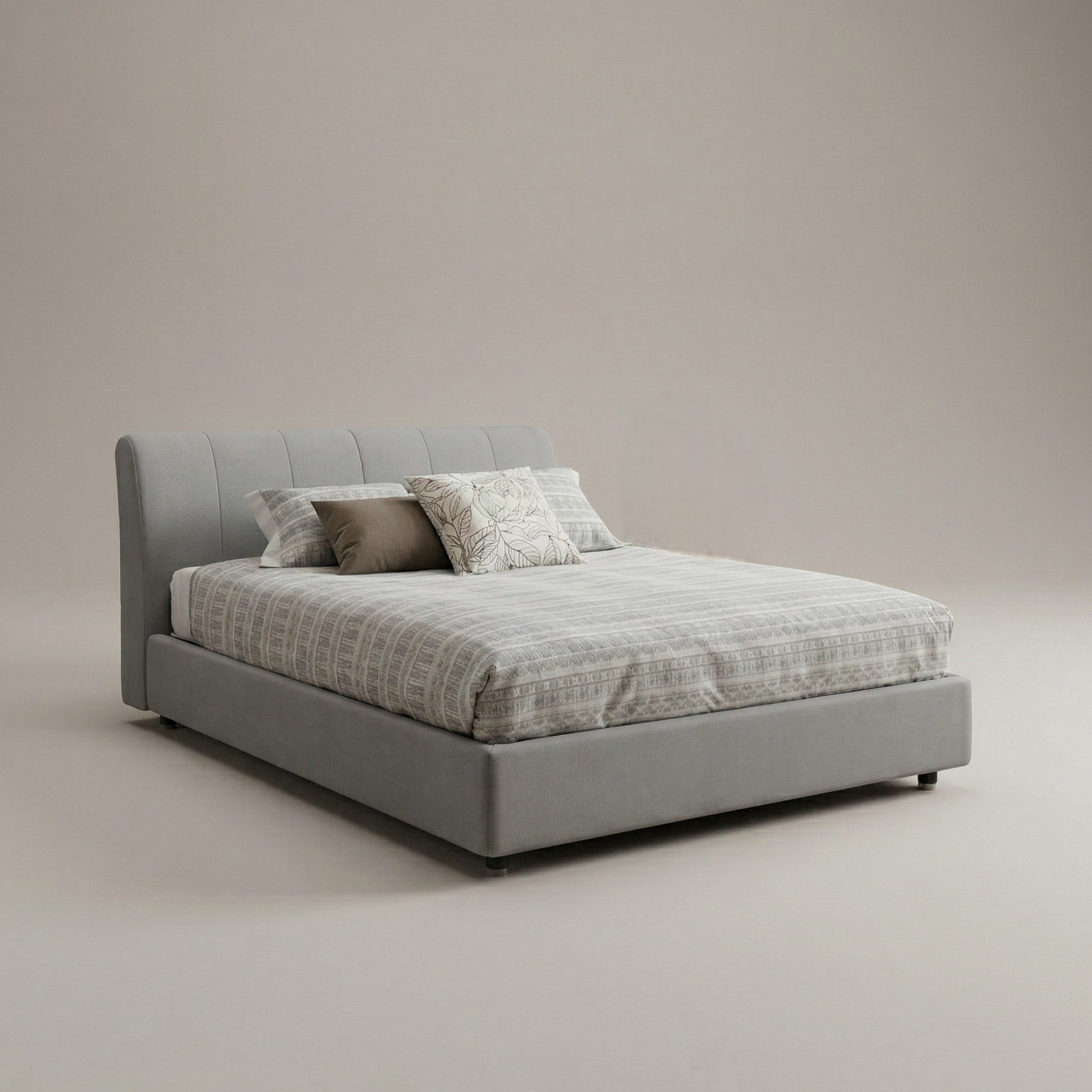 Il letto Fiesse è un letto matrimoniale con contenitore a trapezi e rete a doghe, che unisce praticità e comfort per il riposo quotidiano.