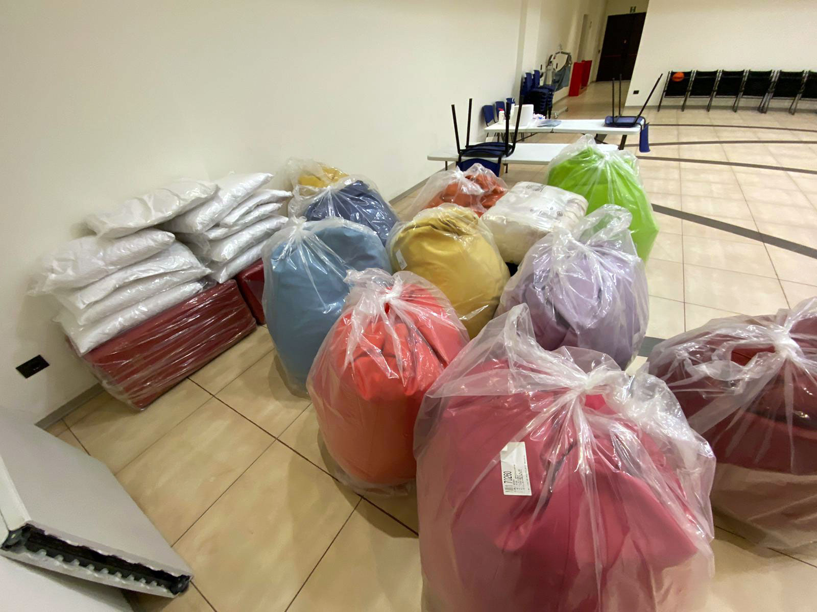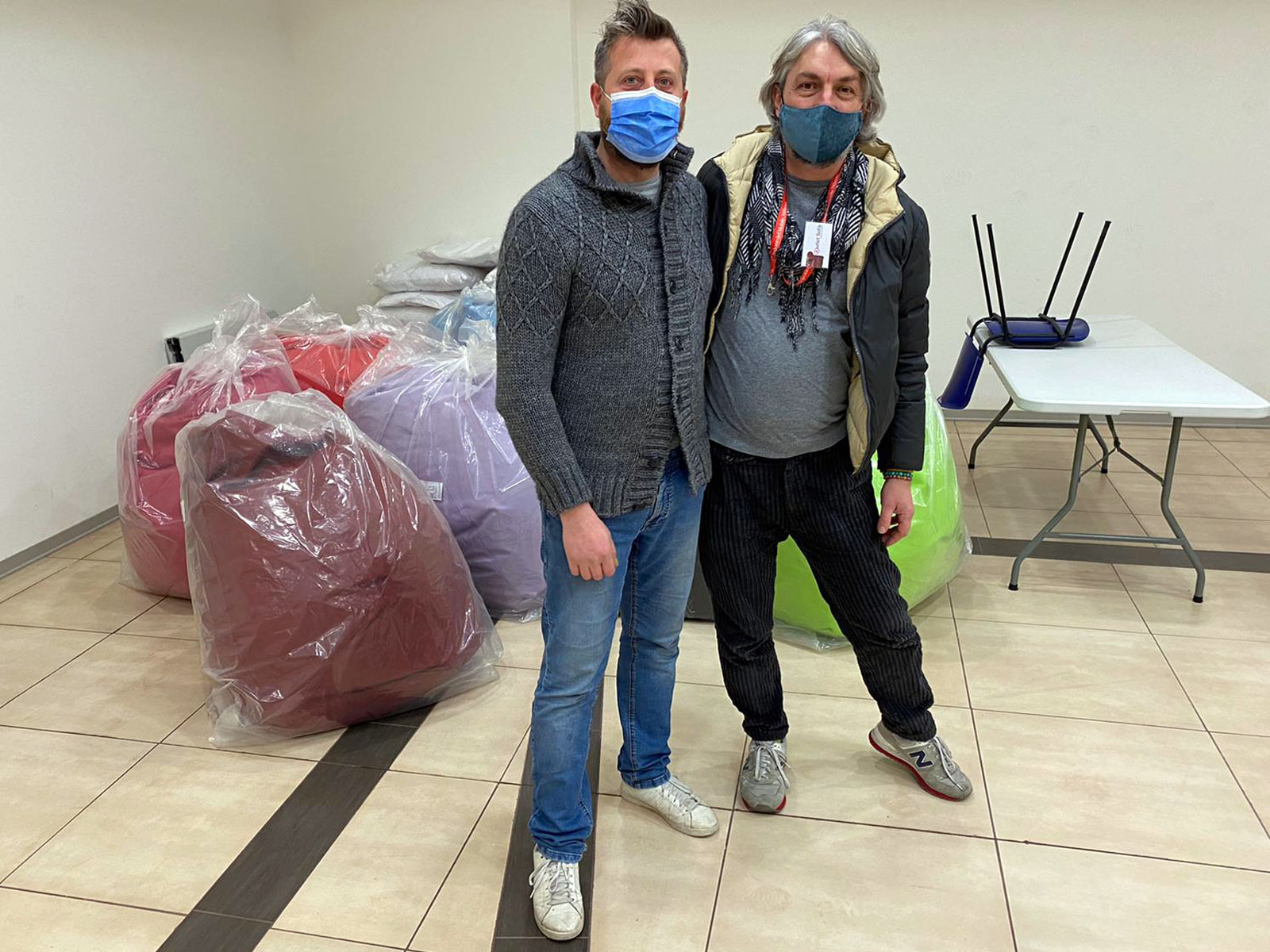 Purtroppo, però, gli arredi delle sale comuni e delle camere da letto erano ormai datati e non trasmettevano più l’allegria e la gioia di vivere che si respira all’interno della comunità... Non ce lo siamo fatti ripetere due volte. Sfidando il freddo e la zona rossa, abbiamo consegnato alla Cooperativa pouf sacco colorati e pouf rettangoli per abbellire le sale comuni, nonché guanciali in memory foam e plaid che rendono il riposo degli ospiti più sereno.